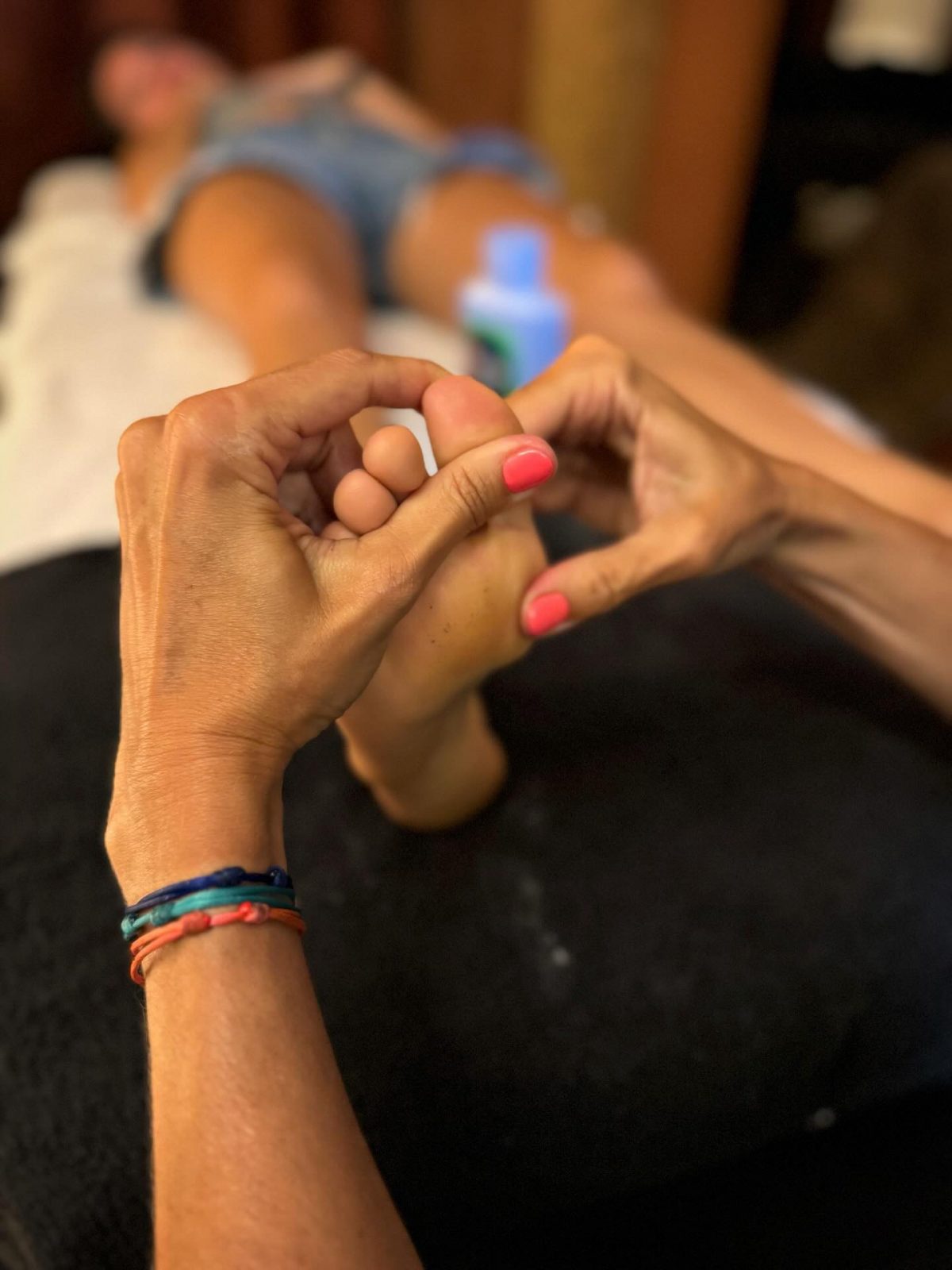 Foot reflexology: a foot massage technique that stimulates reflex zones to promote relaxation and energy balance.