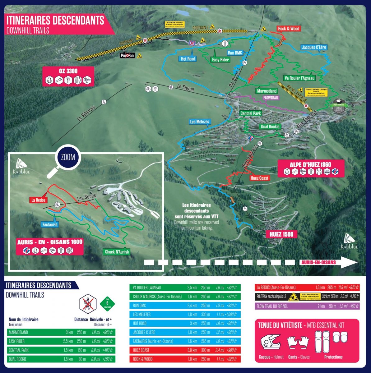 The Auris-en-Oisans bike park has 3 downhill trails with a total vertical drop of 265m: